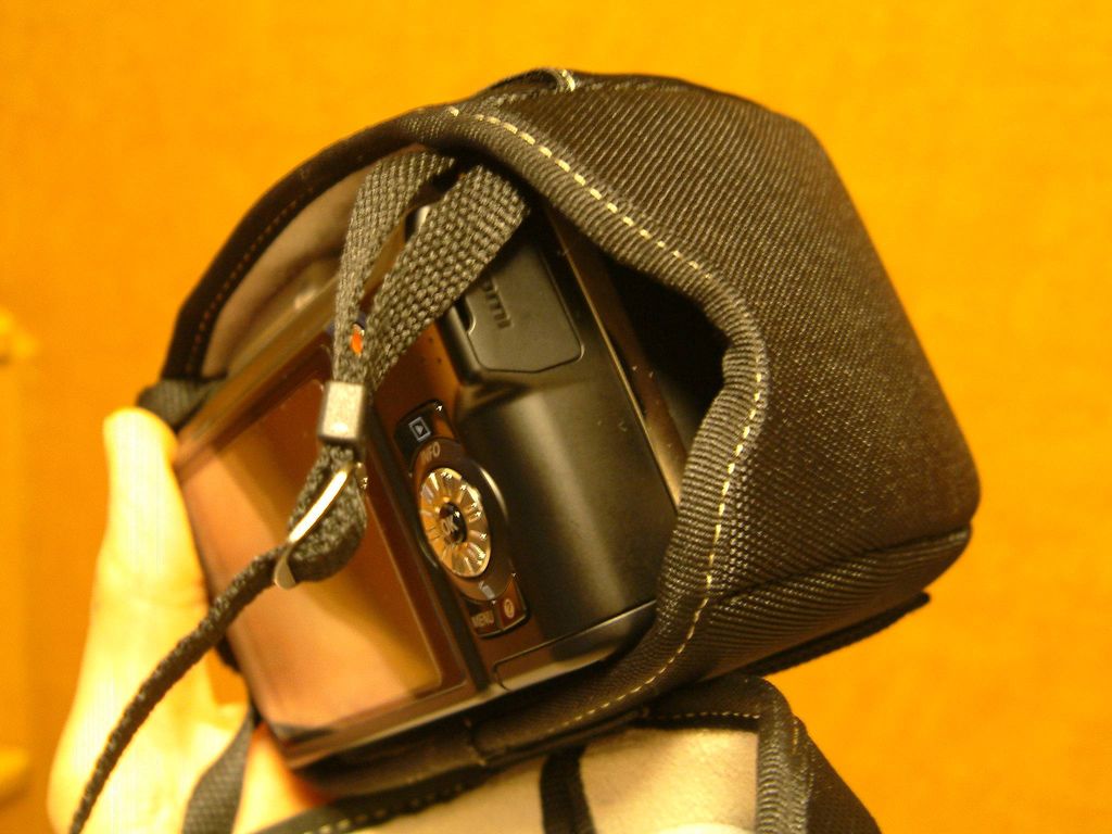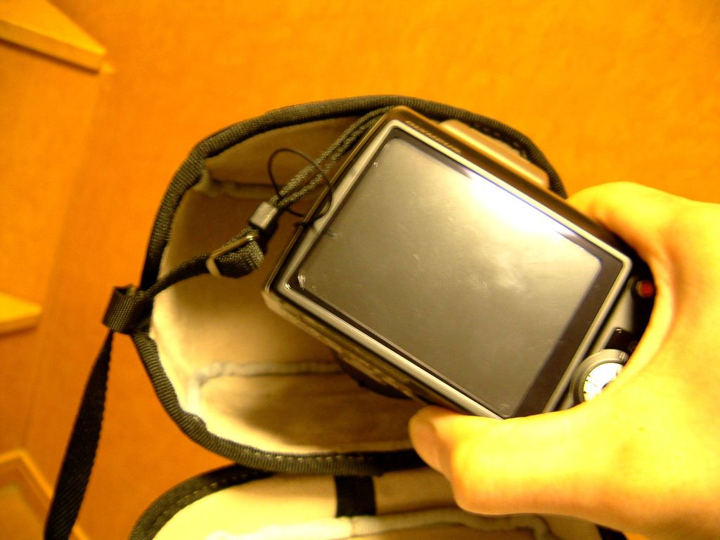 早速、カメラを入れてみる。カメラのストラップをケースに通して、カメラを収納。純正品とあってピッタリ収納できました。少し遊びがあった方が取り出しやすいのだけれども・・・