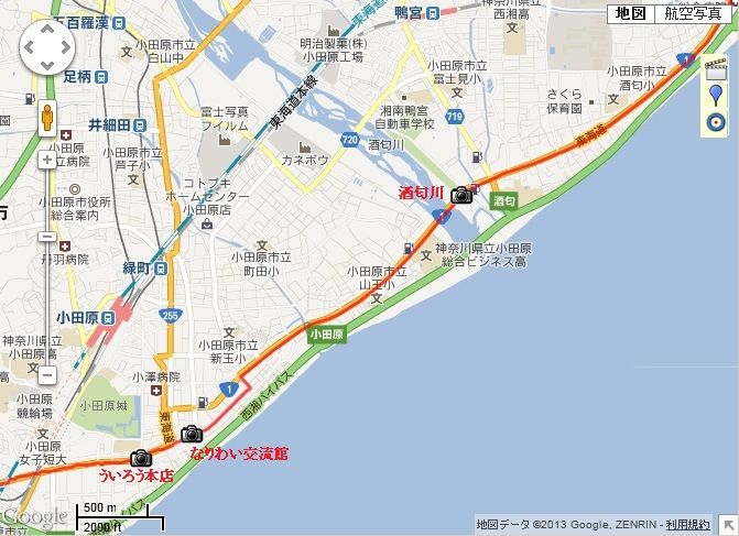 酒匂川(さかわがわ)を渡ってそのまま行けば小田原城。旧街道は新宿の交差点を左に曲がる。