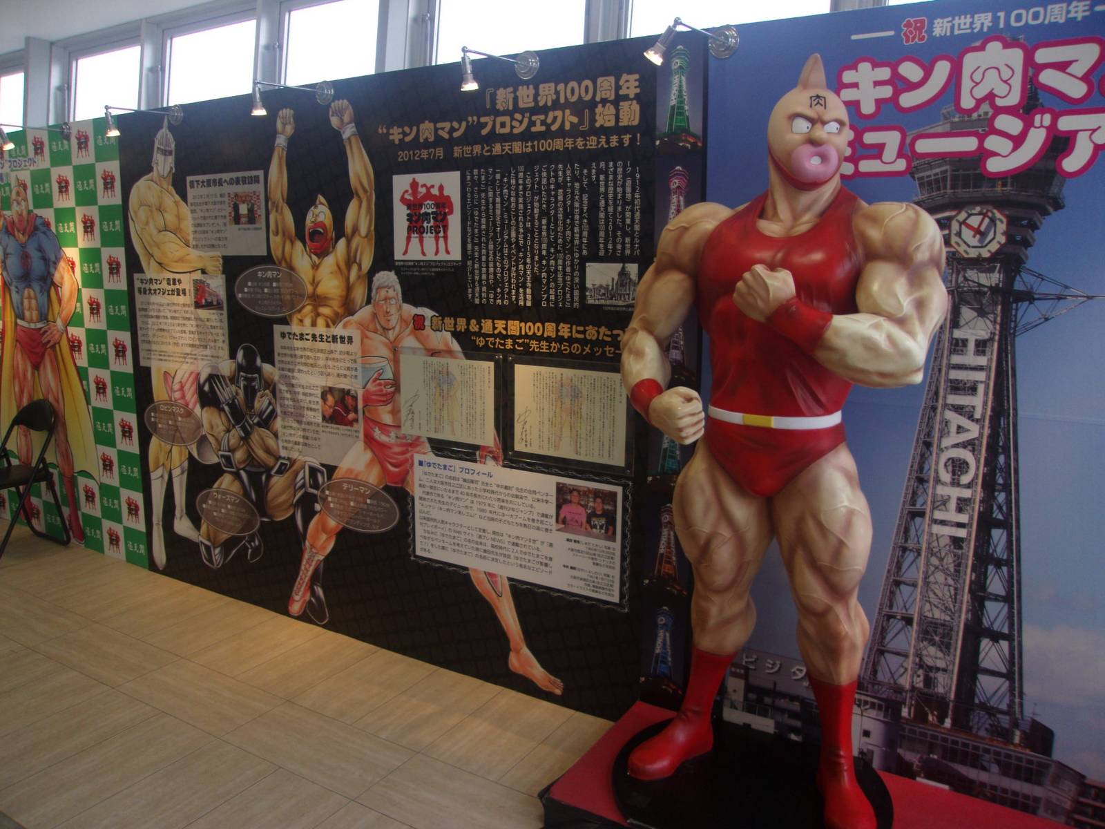 到着! ロビンマスクが迎えてくれます。通天閣の2階には「キン肉マンミュージアム」がありました。なぜ、キン肉マン? どうも、漫画の舞台地に新世界がたびたび描かれているのが理由らしい。