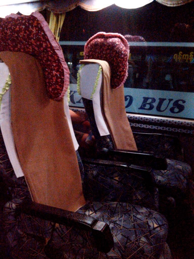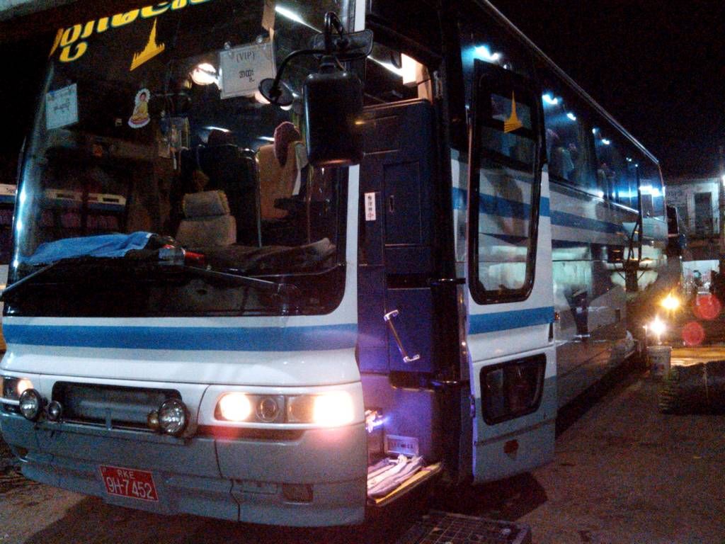 バスは午後8時に出発した。バガン行きのバスのシートは3列独立シートでゆったりしています。路線バスと違い、乗客もツーリストが中心でほとんど地元の方は乗っていません。バスの移動は快適でした。が・・・