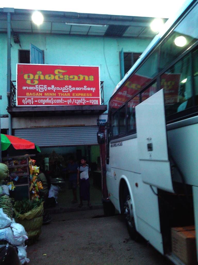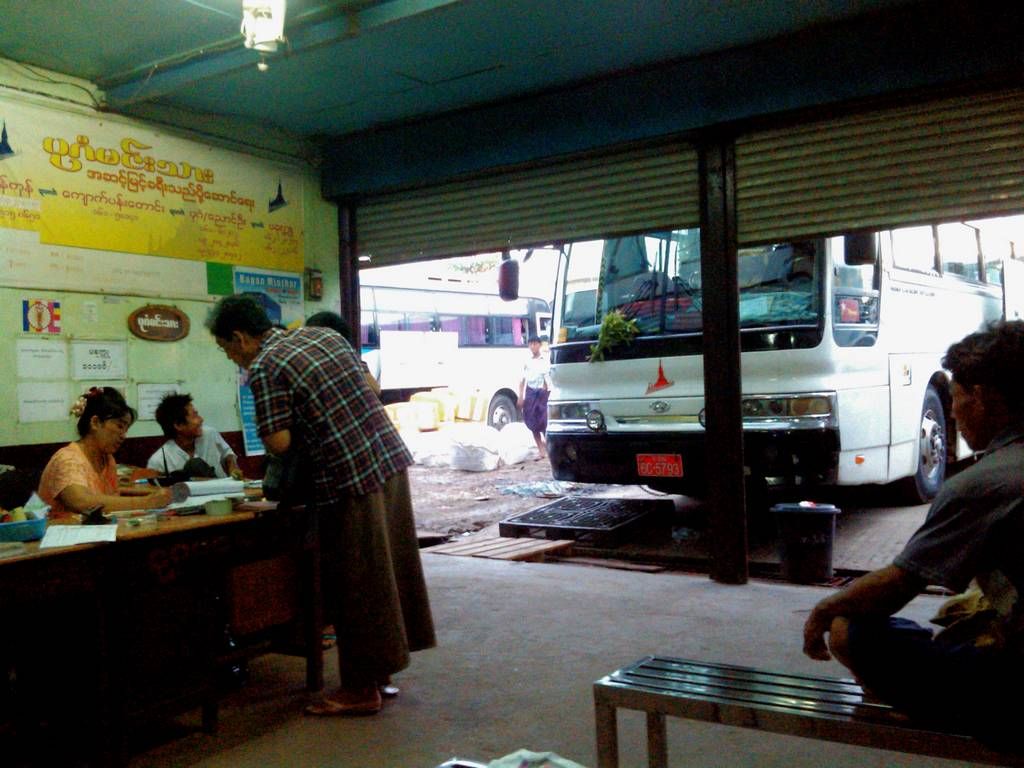バガン行きのバスはヤンゴンの町の外れのアウミングラーバスターミナルから出ている。バスターミナルと言うよりはバス会社の溜まり場といった感じだ。50社以上はあるだろうか? バス会社のオフィスがズラリと並ぶ。同じ会社のオフィスもあるだろうから正確な数は分からない。とにかく多い。