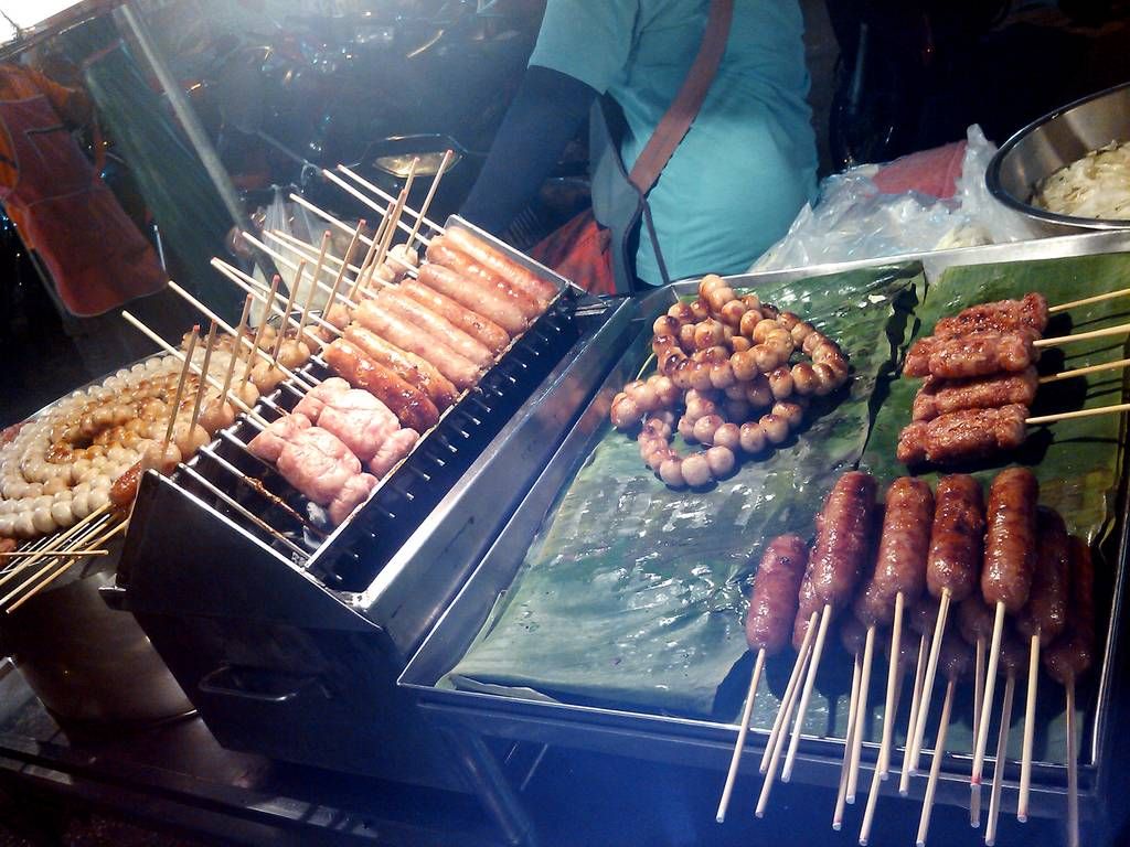 ナイトバザールに行く途中に「WAROROT MARKET」がある。「ここがナイトバザールか!」と勘違いするほどの活気があった。道の露店には串焼きなどの食べ物屋が多く並んでいる。みんな夕飯に買って持ち帰っているようだ。値段も安く手頃だ。「WAROROT MARKET」を抜けチャンクラーン通りのナイトバザールへ。(続きは次のページ)