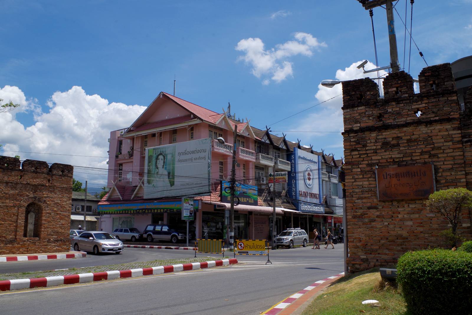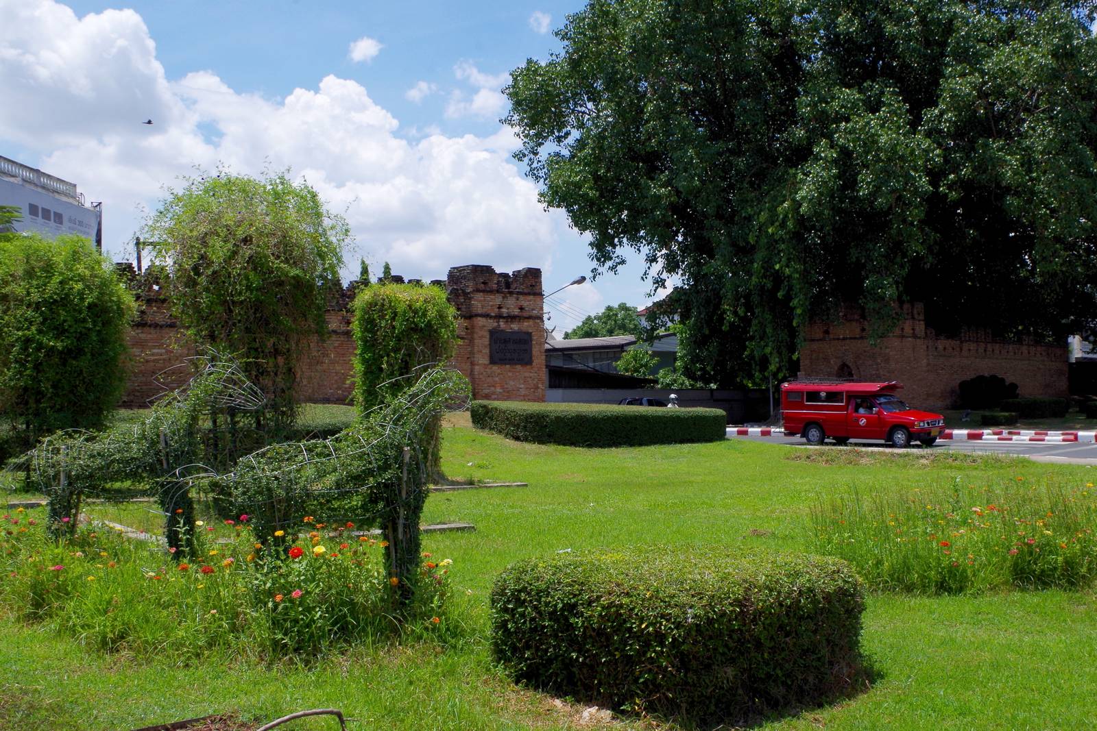⑨(Chiangmai Gate)出入口の門は常にクルマが出入りしていて横断するのに一苦労です。やっぱりこの道は散歩するには向いてない。