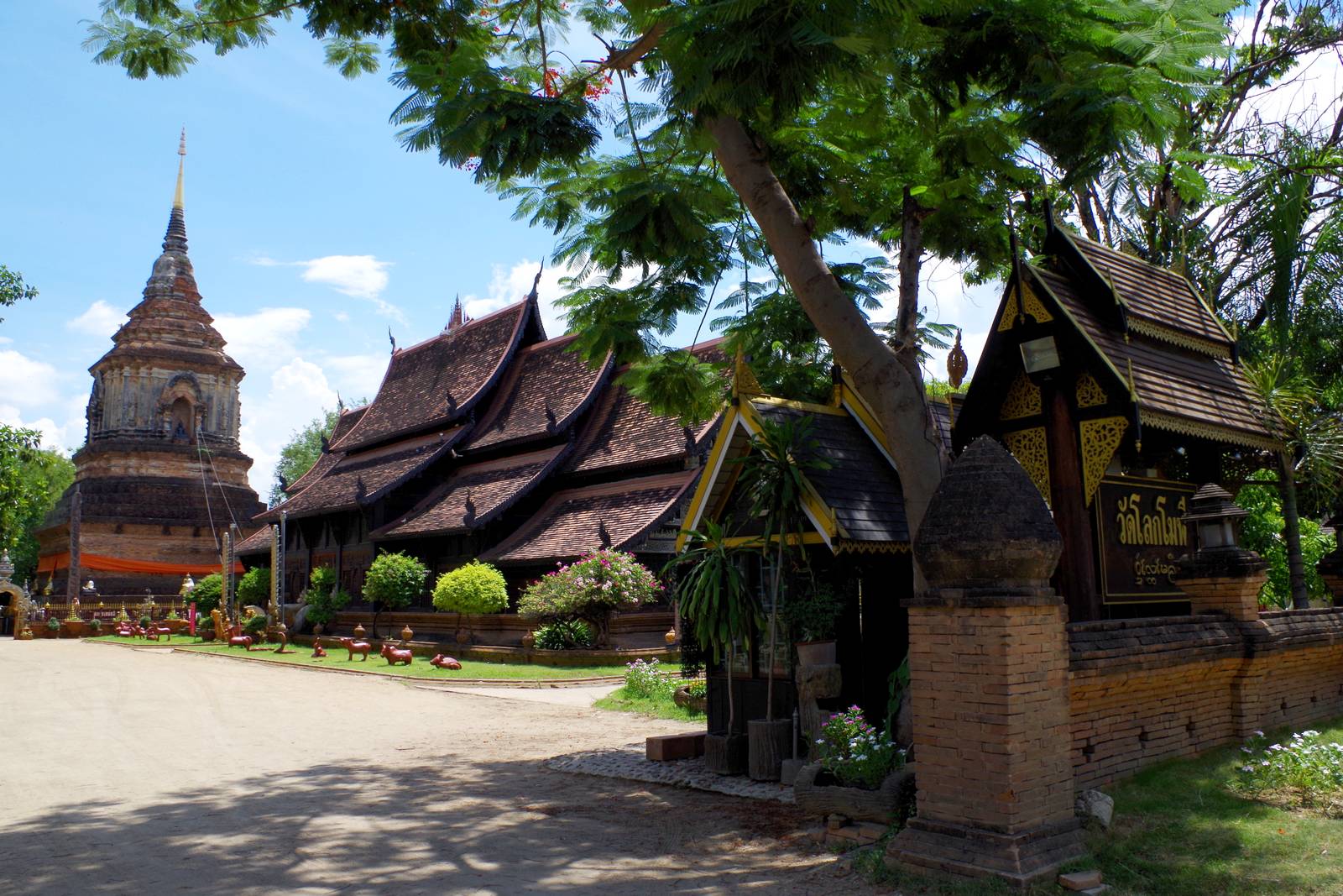 ④(Wat Lok Molee)堀の外側の道路沿いにも大きなワット。こちらは少し有名どころなのか観光客もチラホラです。堀には数ヵ所、歩行者が渡れる橋が架かって堀の反対側に渡れます。だが、クルマは門の前だけです。