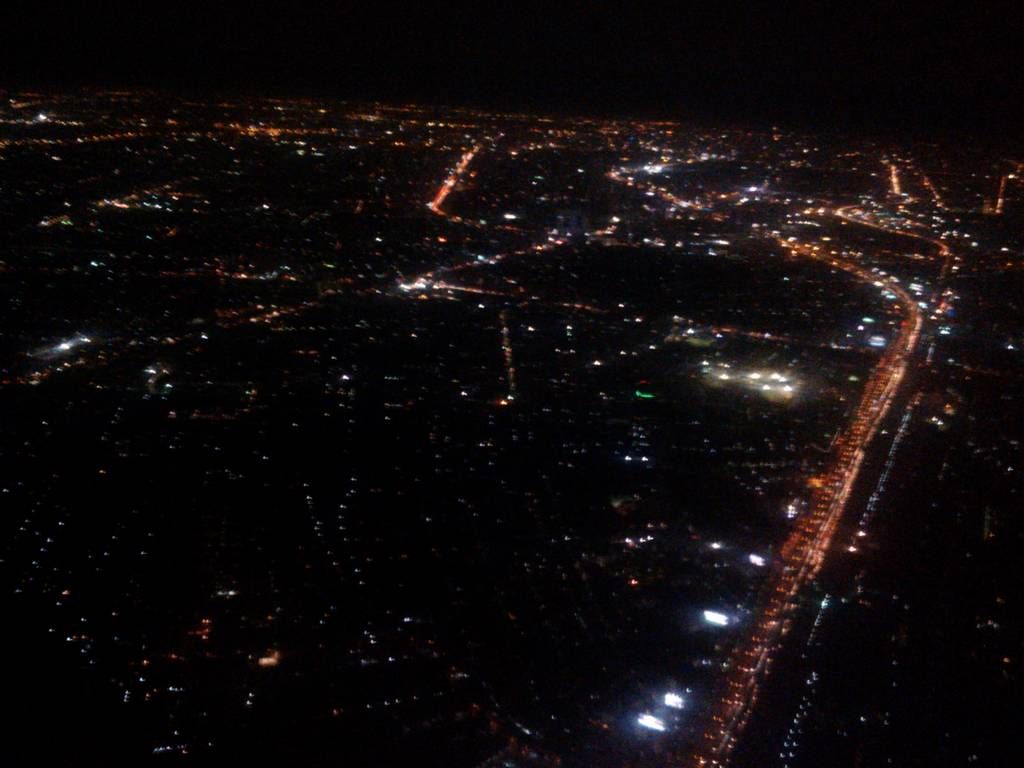飛行機から見るバンコクの夜景はキレイでした。さようなら、バンコク。しばらくして機内食が出てきました。お腹いっぱいだったけど詰め込みます。なかなかの美味でした。