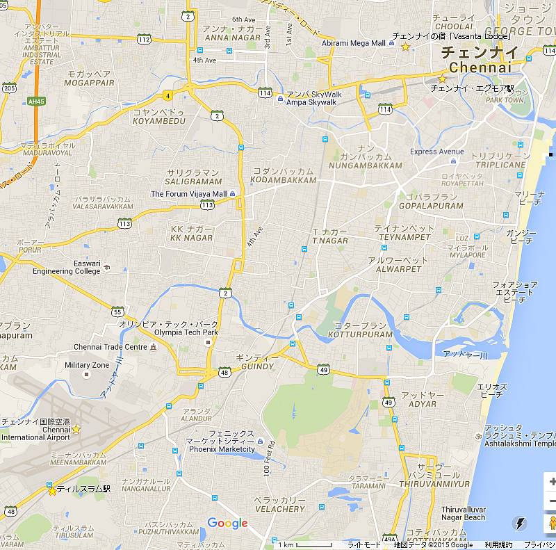 インドのチェンナイ国際空港には夜9時40分(インド時間)頃の到着となりました。インドとタイには1時間の時差があるので3時間あまりのフライトでした。ここの空港、かなり荒い感じで荷物が出て来ます(汗)。インドですね。さて移動です。チェンナイ空港は町の中心から離れた場所にあります。予約したあるチェンナイの宿までは15キロほど離れている。