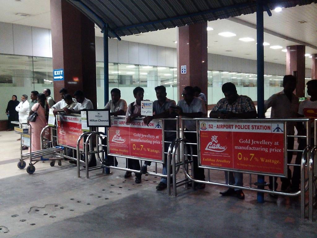とりあえず、近くのティルスラム駅まで行ってみる事にした。途中にもATMがあるかもしれない。予約してある宿はチェンナイの中心、エグモア駅の近くにあった。列車に乗ってしまえば、何とか自力で辿りつけそうだ。空港の前の道に出ると、タクシーとオートリクシャのおっちゃん達がわんさか寄ってきた。「ホテルは決まっているのか?」「チェンナイの中心まで600ルピー(約1,200円)だ!」