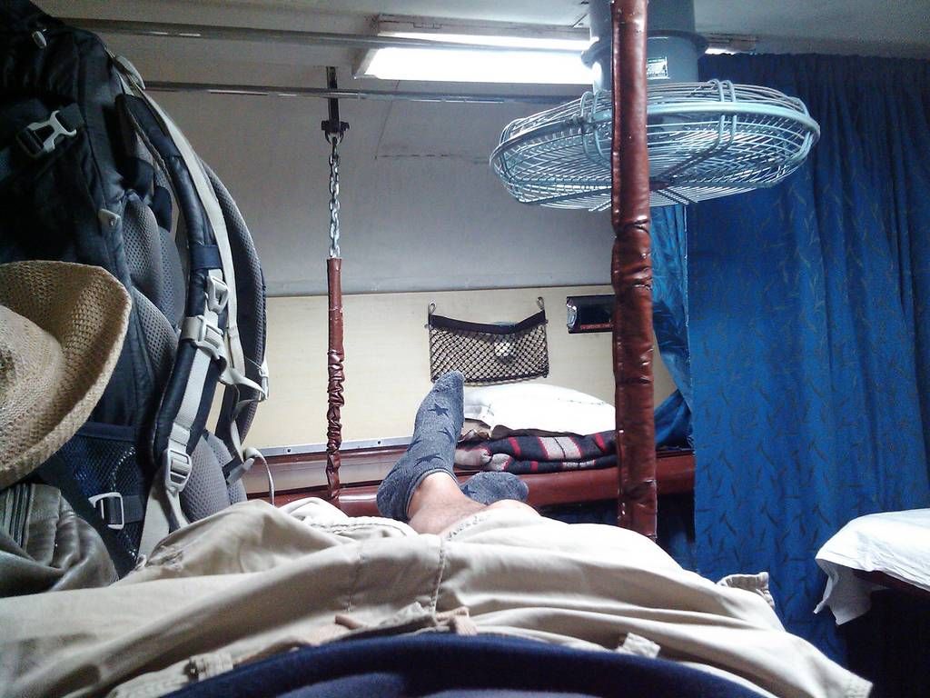 僕の乗るA2の寝台車両はエアコン付きだ。車両の入口には大きな紙が張ってある。乗客リストだ。これに自分の名前があるか確認して乗り込む。早く来たのでまだ人は少なかった。A2の寝台車両には一部屋に2段ベッドが二つある。部屋と通路を挟んで向かい側にもう一つ2段ベッドがあり、部屋に4人、通路に2人でワンセットだ。