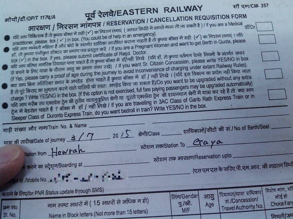 何とかガヤ行きのチケットが買えました。今回もエアコン付き寝台車両の2Aクラスです。高額です。1,045ルピー(約2,090円)もします。でもまだインド人が犇くスリーパークラス(SSクラス、3段ベッドの寝台車両)には乗る勇気はなかったのだな。夜8時30分発の翌朝4時55分着です。またまた早朝の到着です(泣)。