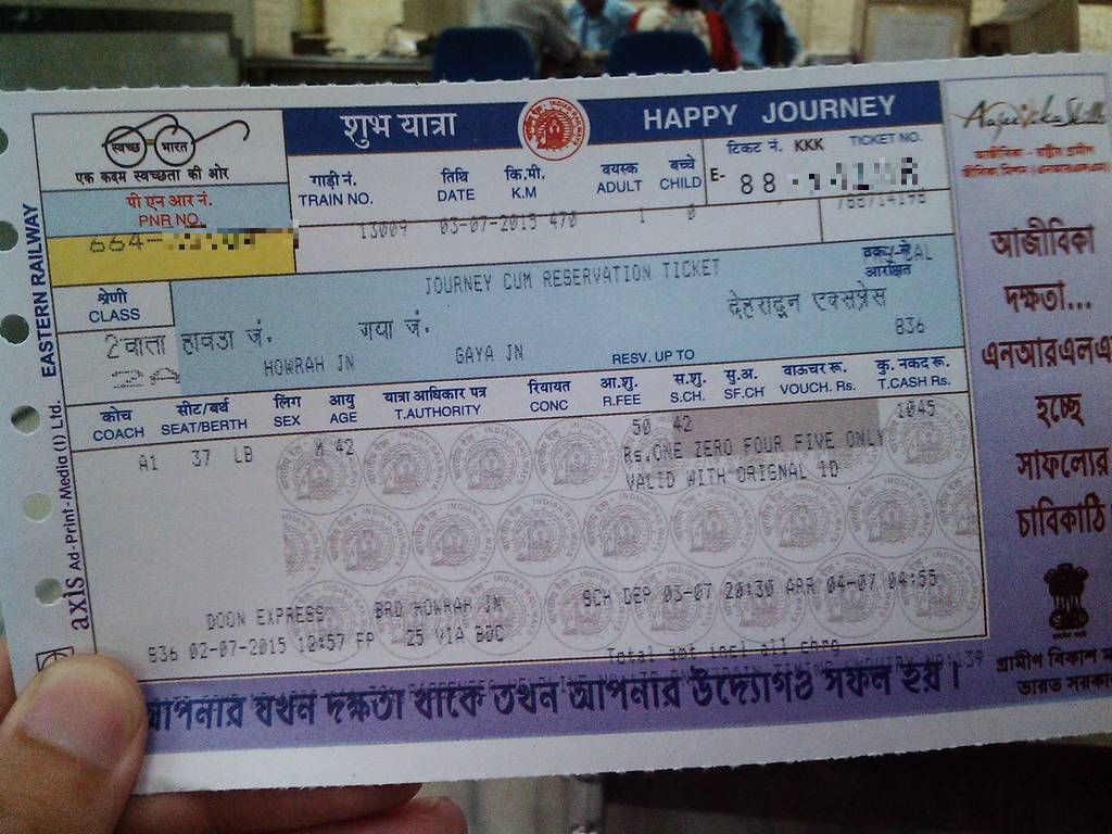 寝台列車チケット(-ガヤ) 1,045ルピー