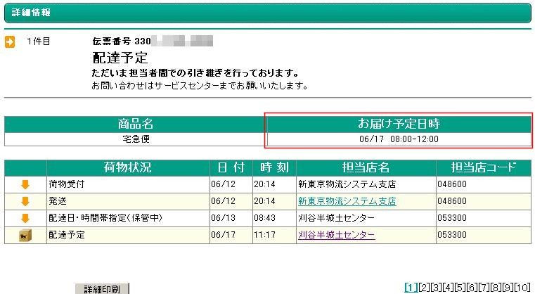 クロネコ○マトの荷物追跡サービスでも刈谷半城土センターに、06/13、(保管中)となってるじゃないか。午前の便が出る時にわかっただろ~、ふつう。なに、1時間も待たせんだよ!